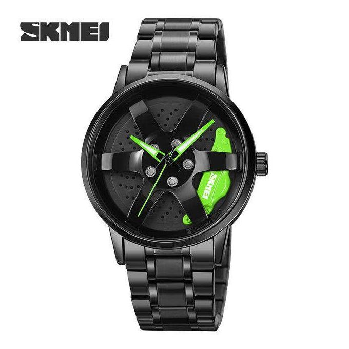 skmei 1990 Rolling Quartz Spinning Car Wheel stainless mens Watch-red pad
