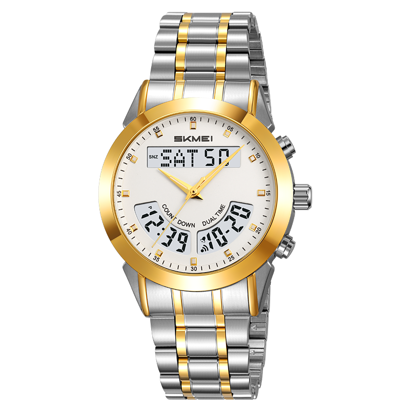 SKMEI 2445 Men’s Luxury Stainless Steel Wristwatch Analog-Digital Dual Time-silver